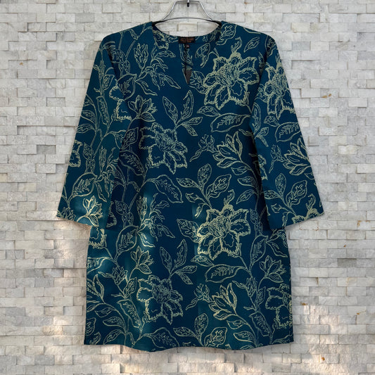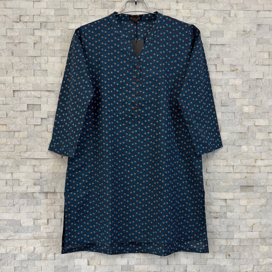 Jaipuri Cotton Short Kurti Co-ord Set – Teal Blue Floral Print