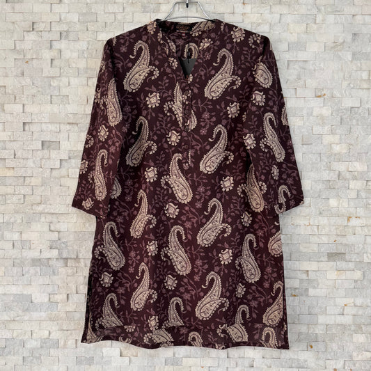 Jaipuri Cotton Short Kurti Co-ord Set – Deep Coffee Paisley & Floral Vine Print