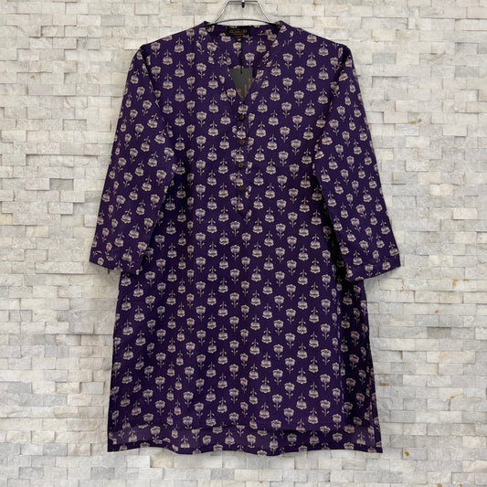 Jaipuri Cotton Short Kurti Co-ord Set – Deep Purple Small Floral Print
