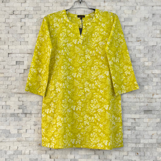 Jaipuri Cotton Short Kurti Co-ord Set – Lime Green Leaf Print