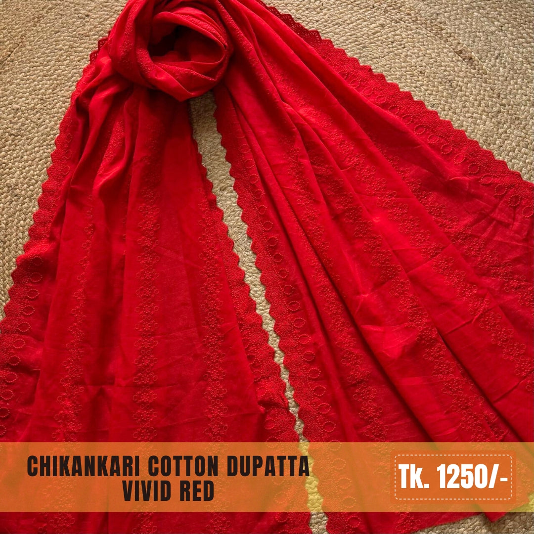 Chikankari Cotton Dupatta – Vivid Red (SKU:CD-0011)