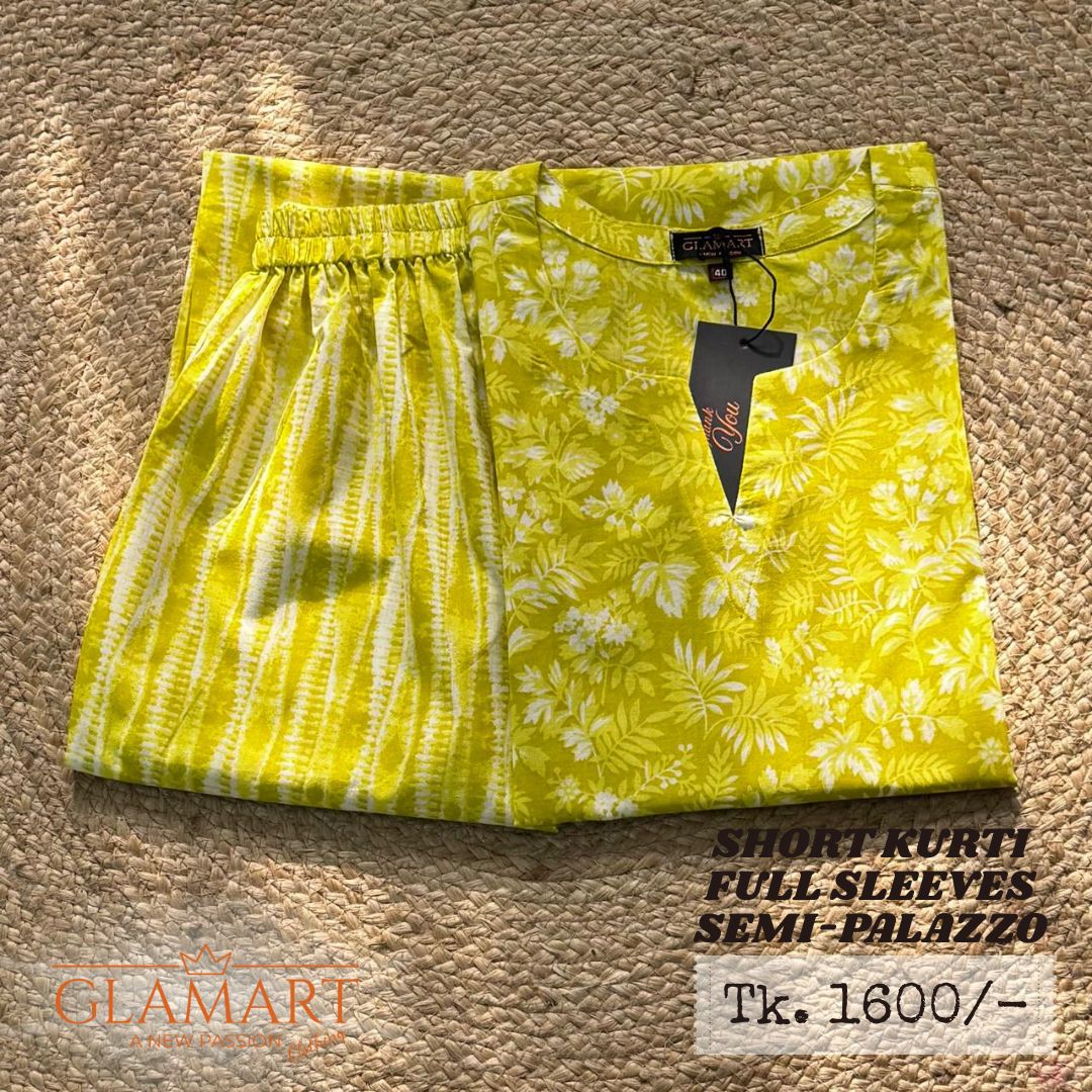 Product Code: SC0023 Set Includes: Short Kurti with Matching Bottom Kurti Length: Short Sleeves: Full Sleeves Neckline: Round V-Notch Bottom Style: Semi-Palazzo Waist: Full Elastic Waistband Fit: Regular & Comfortable Fabric: Jaipuri Cotton Occasion: Daily Wear, Office, Casual Care Instructions: Gentle wash recommended