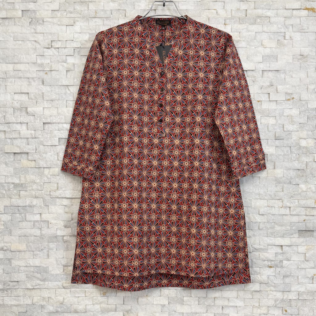 Jaipuri Cotton Short Kurti – Deep Red Bold Starburst Geometric Print | SK0041
